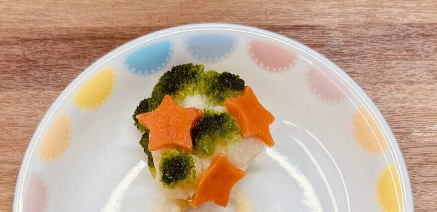 ポテトサラダをツリーに見立て盛り付け、星型のにんじんを飾る。