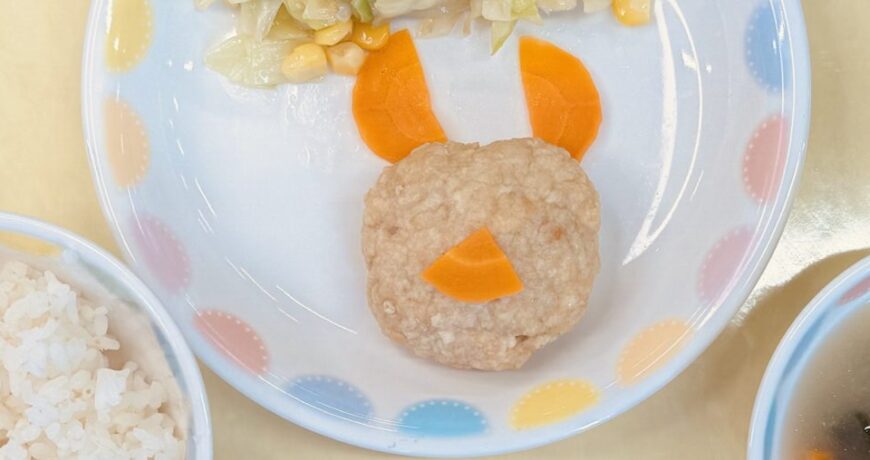 小鍋にしょうゆ、上白糖、みりんを加え、一煮立ちさせたたれを3に塗る。つくねの上ににんじんをうさぎ(顔と耳)に見立てて飾る。