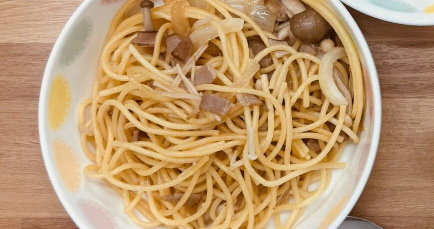 1. スパゲティは3等分の長さに折り、約7分茹でる。