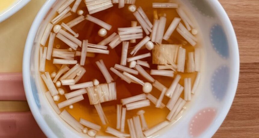 にんじんはいちょう切り、えのきたけは1cm幅に切る。