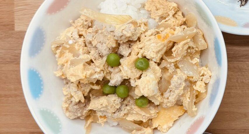 丼にごはんを盛り、3を上にかけ、グリンピースをのせる。