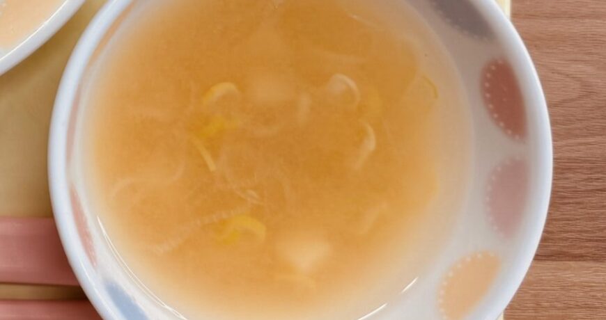 油揚げは熱湯をかけて油抜きし、短い細切りにする。 -