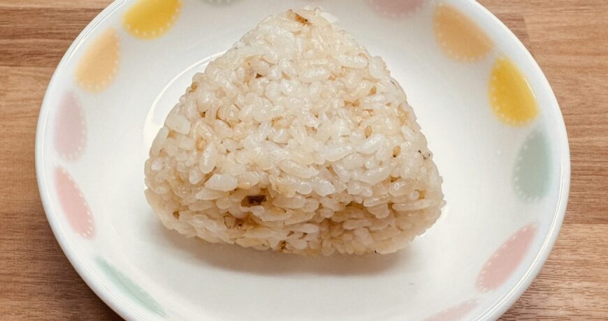 1に粉チーズ、白ごま、かつお削り節、しょうゆを混ぜておにぎりにする。