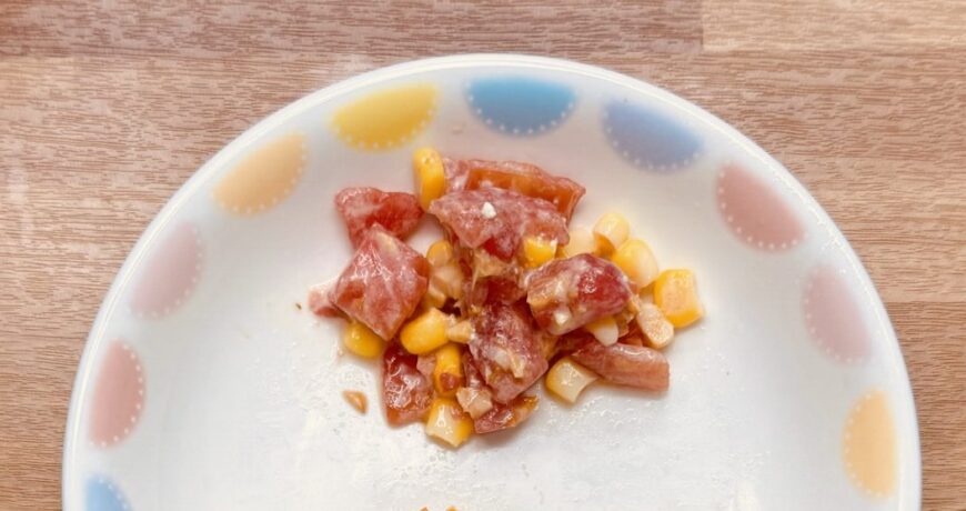 トマトは湯剥きして1cmの角切りにし、ザルに入れて水気を切る。