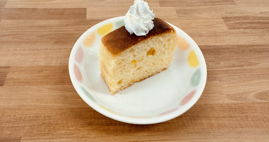 3を切り分けて、ホイップを飾る。