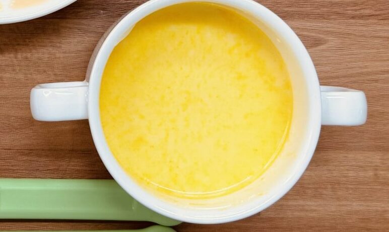 4. 牛乳、食塩を加えて沸騰しない程度に温める。