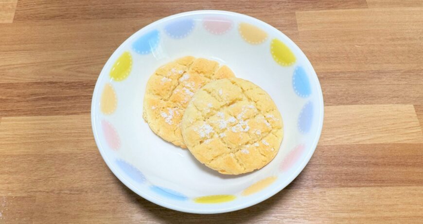 クッキングシートを敷いた天板に丸めながら乗せてつぶし、格子状に切れ目を入れる。上に上白糖を乗せる。