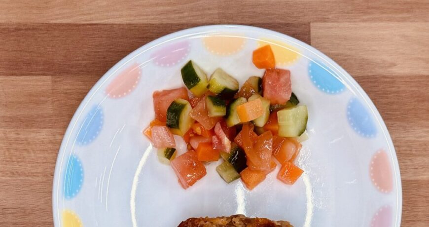 にんじん、きゅうりは1cm角に切る。 それぞれ茹でて水気を切る。