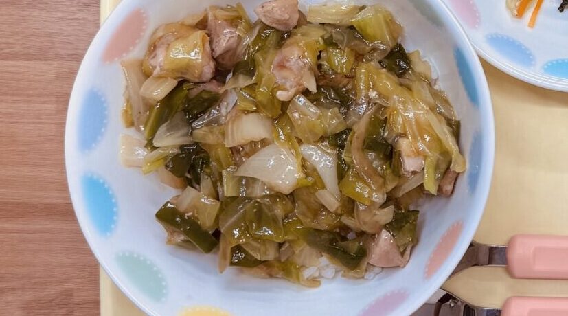 中華丼(鶏むね、ピーマン、はいが米入り)