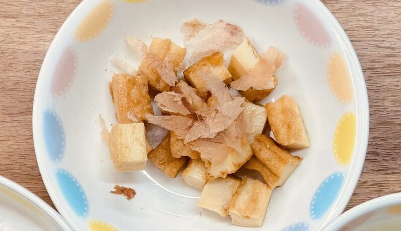 厚揚げは油抜きをして、1.5cm角に切る。