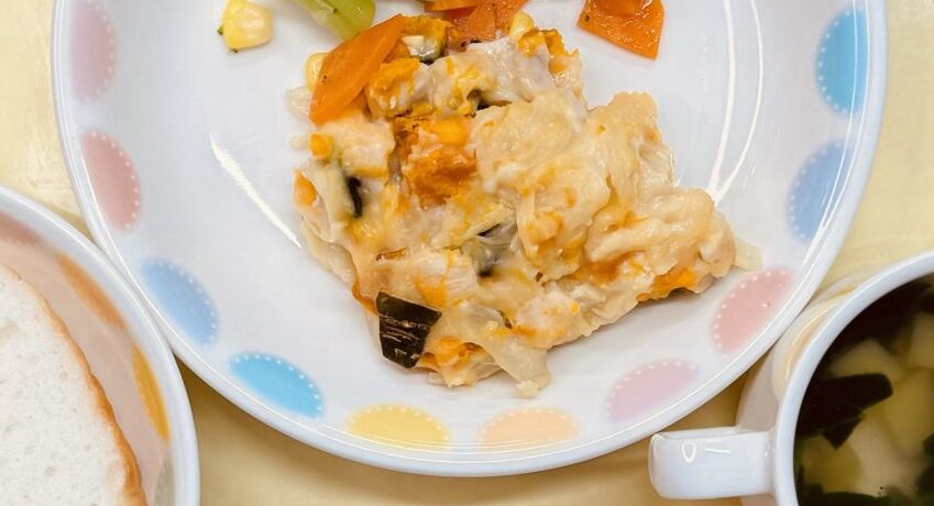 3. 1に火が通ったら、火を止めて2を加え、とろみがつくまで混ぜながら加熱する。