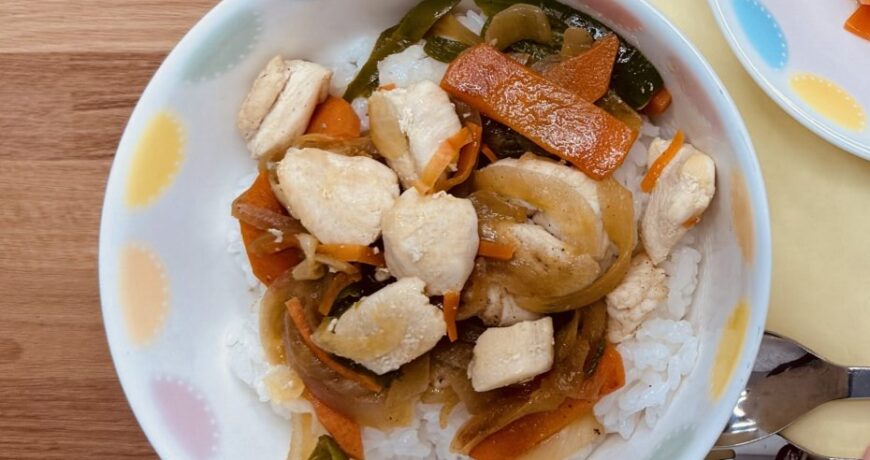 鶏肉の甘辛炒め丼
